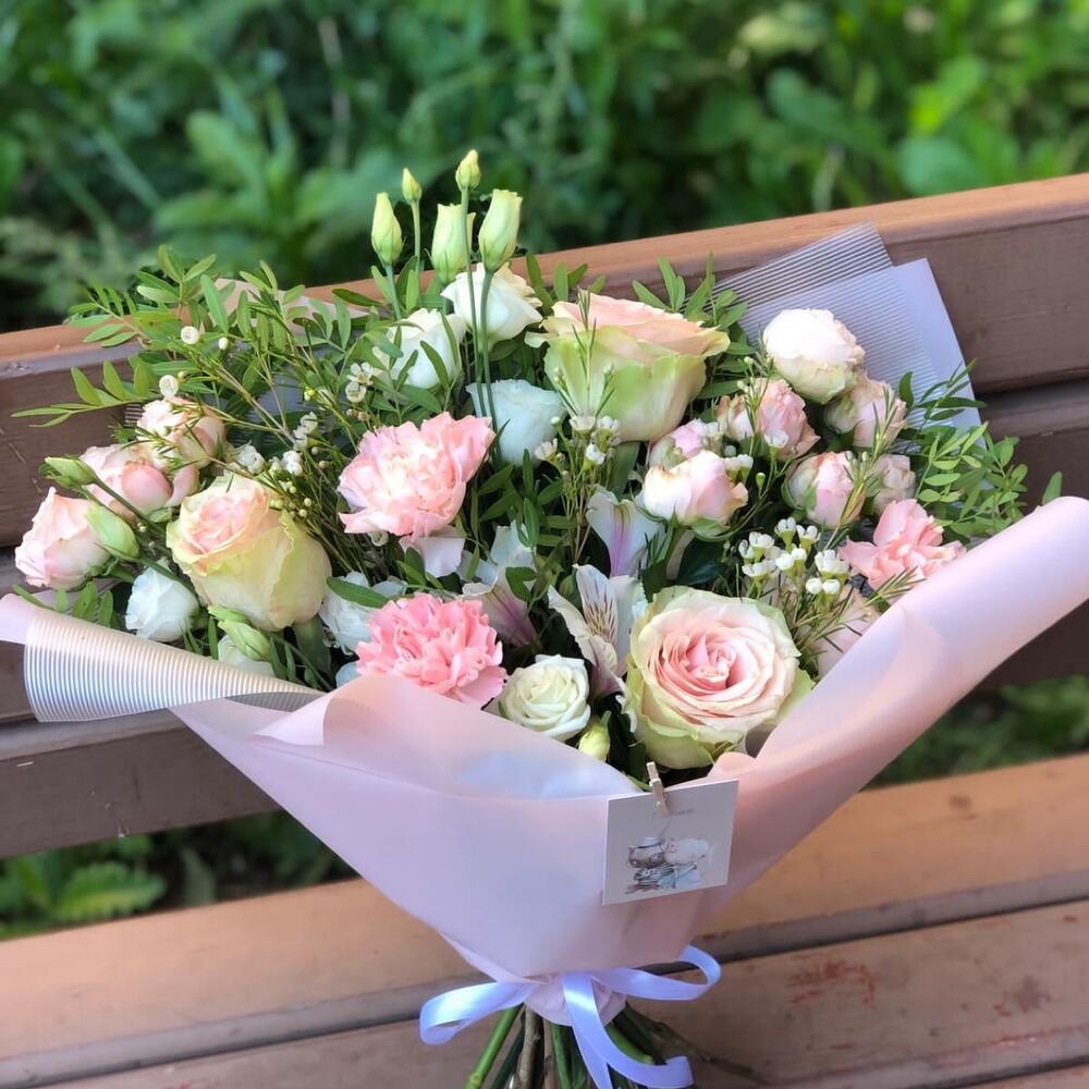 Категории: АльстромерииРозы, Гвоздики, Кустовые розы, Лизиантусы