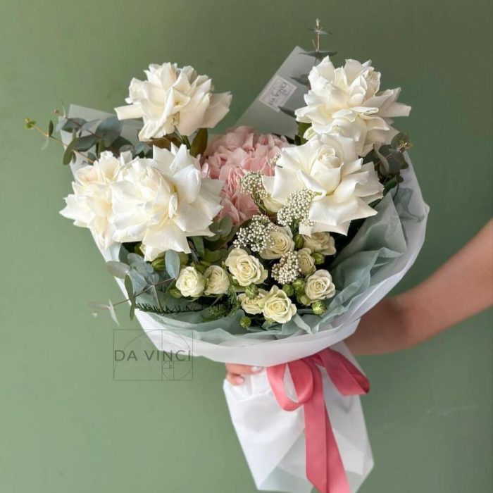 “Эвкалиптическая роскошь” гортензия и пионовидная кустовая роза