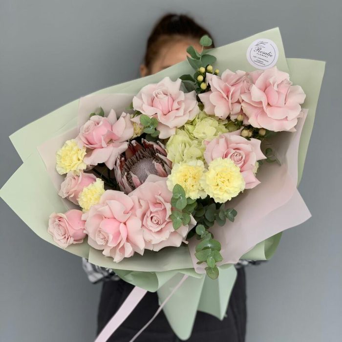 “Эвкалиптическая роскошь” гортензия и пионовидная кустовая роза